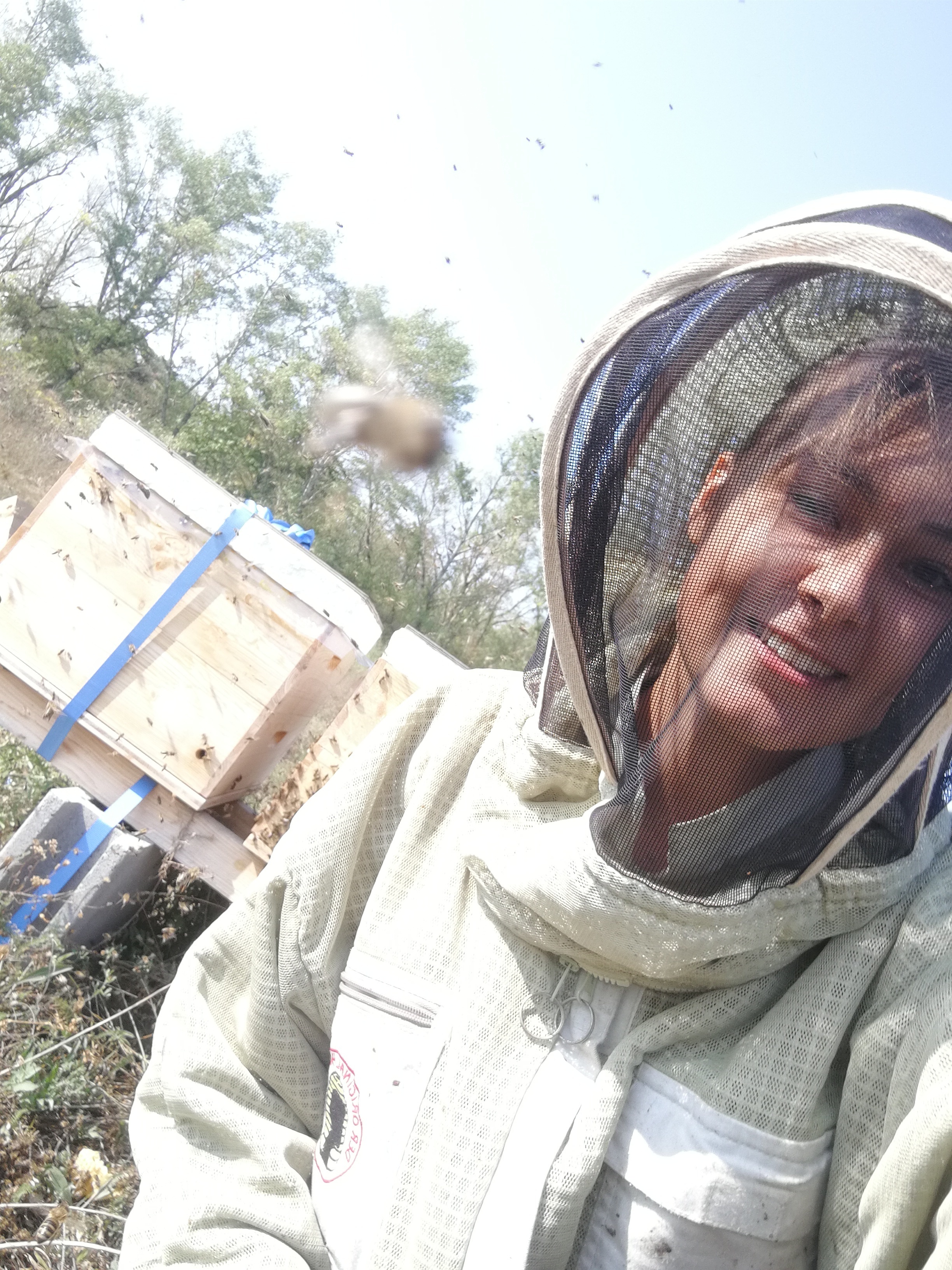 Ich bin ein Imkerlehrling. Schulische Ausbildung, habe ich den Facharbeiterkurs belegt. Ich arbeite seit knapp zwei Jahren mit Bienen zusammen. Mache auch eine Ausbildung zur Imkerin.