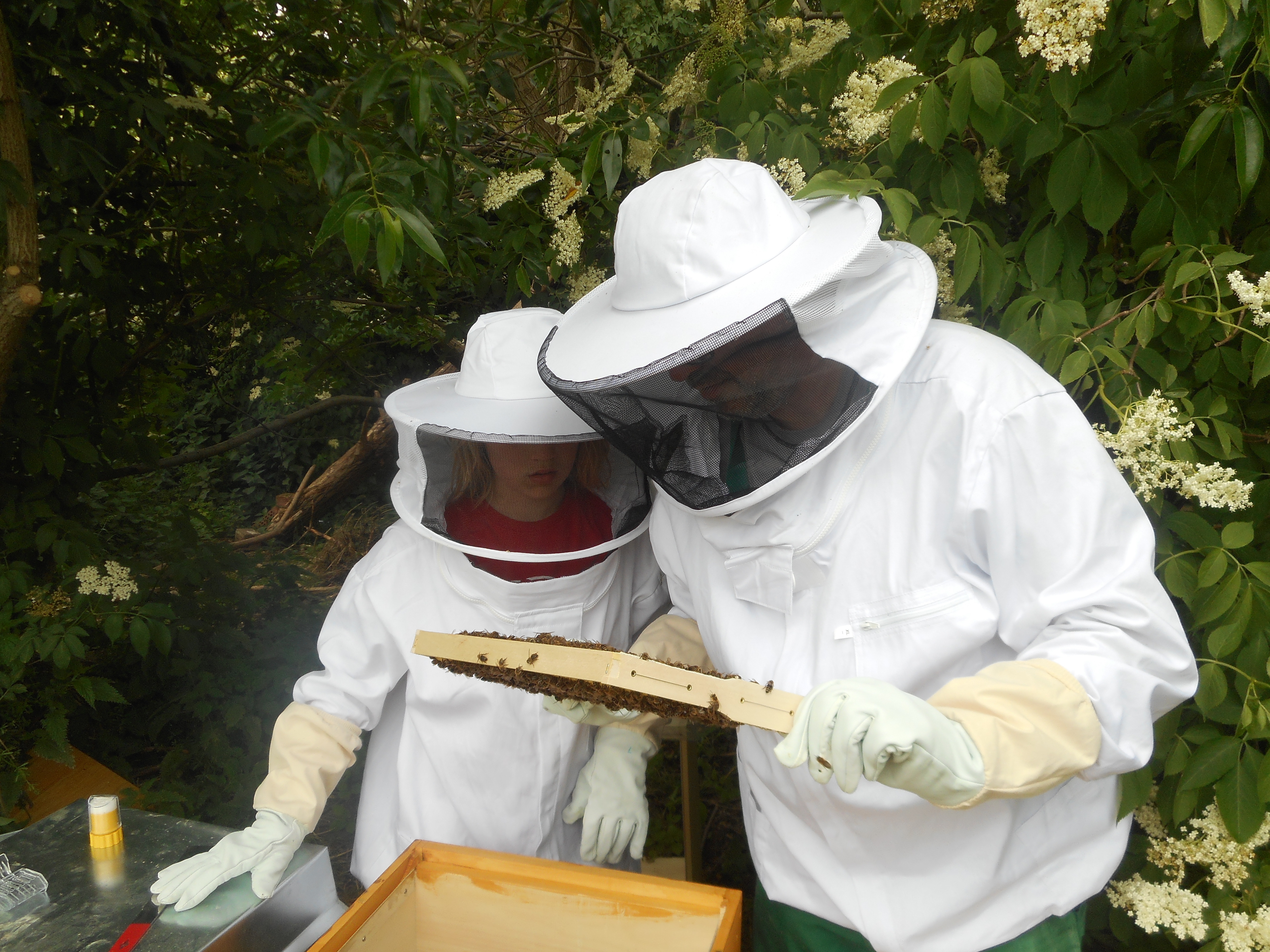 Die erfahrene Kreuzberger Imkerin Lisa Schwab hat in einem Bienenjahr 5 Neulinge, darunter mich, angeleitet. Wir haben theoretisch und in 10 praktischen Vor-Ort-Terminen an ihren Bienen in Treptow gelernt, was gute Imkerpraxis ist. Inzwischen hat auch einer meiner Söhne einen (anderen) Kurs besucht - wir ergänzen uns ganz gut. Schon als Kind in Schleswig-Holstein hatte ein Nachbar viele Bienen, das fand ich immer spannend. Als unsere Kinder etwas älter wurden und wir ein Ferienhaus im Havelland erwarben, kam die Idee, Bienen zu halten wieder auf. Kurs in Berlin gemacht, 2 Ableger vom Nachbarn im Havelland übernommen und nun summt es bei uns im Garten.