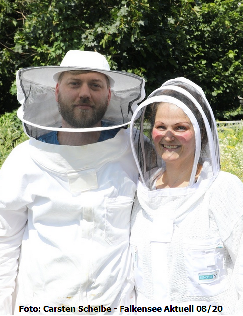 Ich habe mich ab Mitte 2018 mit Bienen beschäftigt und war leider schon zu spät für einen Imkerkurs. Met habe ich da schon gemacht. Ich war einen Tag Probeimkern und habe den Theorie Kurs des Brandenburger Landesverbandes absolviert. 2019 waren meine Freundin und ich im praktischen Anfängerkurs und haben noch zusätzlich den Theorie Kurs an der Freien Universität Berlin besucht. Mittlerweile habe ich über 10 Bücher zu dem Thema gelesen und bilde mich stetig fort. Auch was die Imkerei im Rest der Welt angeht, versuche ich über den Tellerrand zu schauen. Ich bin Patrik, gelernter Drucker und aktuell im Studium der Druck und Medientechnik. Es war schon ziemlich blöd mein ganzes erspartes für Bienen und Material auszugeben aber es hat sich definitiv gelohnt und wieder etwas Sinn gegeben abseits des Studiums. Die handwerkliche Arbeit fehlte mir mit Studium und Bürojob aber mit den Bienen bin ich jetzt wieder glücklich. Auch bekomme ich durchweg positive Reaktionen was mich bestärkt daran festzuhalten. Gemeinsam mit meiner Freundin Verena 35, Erzieherin in der Kinder und Jugendhilfe, versorgen wir unsere Völker im Garten. Die Falkensee Aktuell hat in ihrer August Ausgabe 2020 einen Bericht über unsere Imkerei gedruckt.