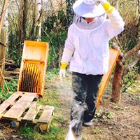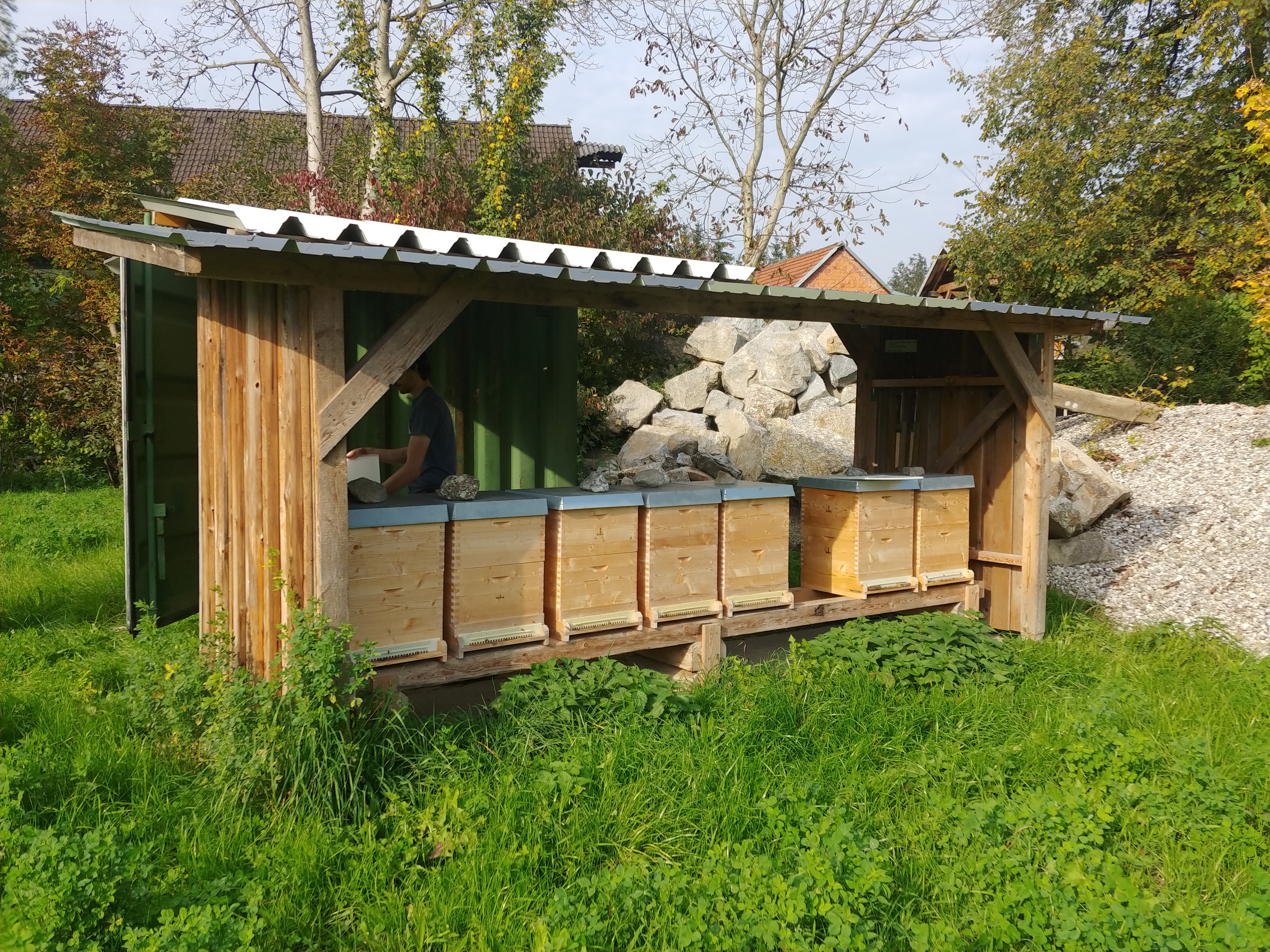“Schon Als Kind faszinierten mich die fleißigen Bienen So kleine Bienen füllen Honiggläser nur Durch das Sammeln von Pollen. Unglaublich! Jetzt habe ich endlich einen Garten der groß genug ist Bienenvölker aufzustellen. Max 4 Völker ist mein Idee.”