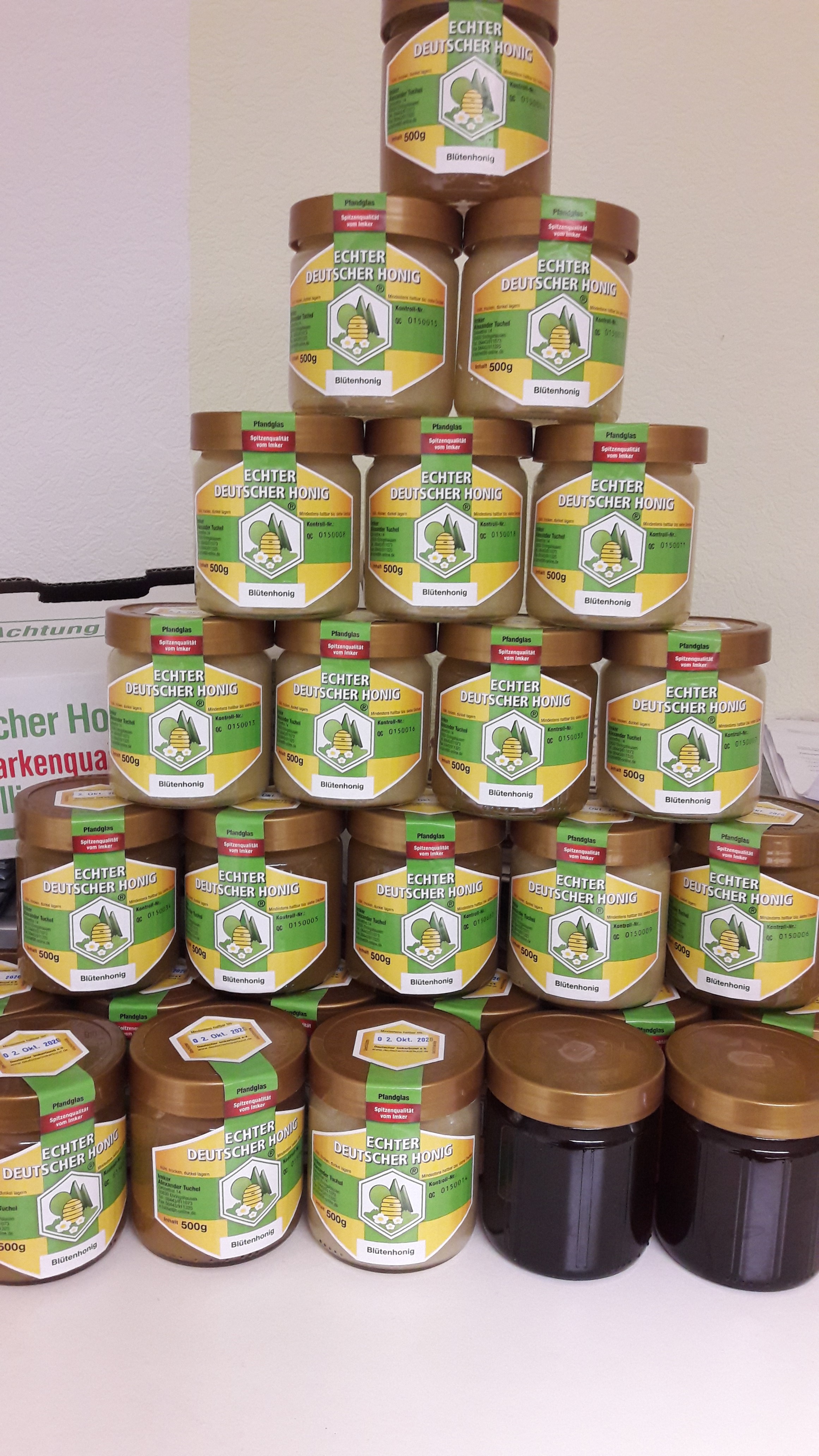 Frühlingsblüten ; Sommerblüten und Waldhonig Alle Honige Labor geprüft und mit dem Qualitätsgütesiegel ausgezeichnet. Zustellung auf Vereinbarung möglich. Versand möglich Abfüllung in Gläser möglich 1500 KG Frühlingsblütenhonig ohne Raps Ernte 2024 , € 7,50 600 KG Sommerblütenhonig Ernte 2023, € 7,50 2000 KG Waldhonig Ernte 2024 , € 8,50