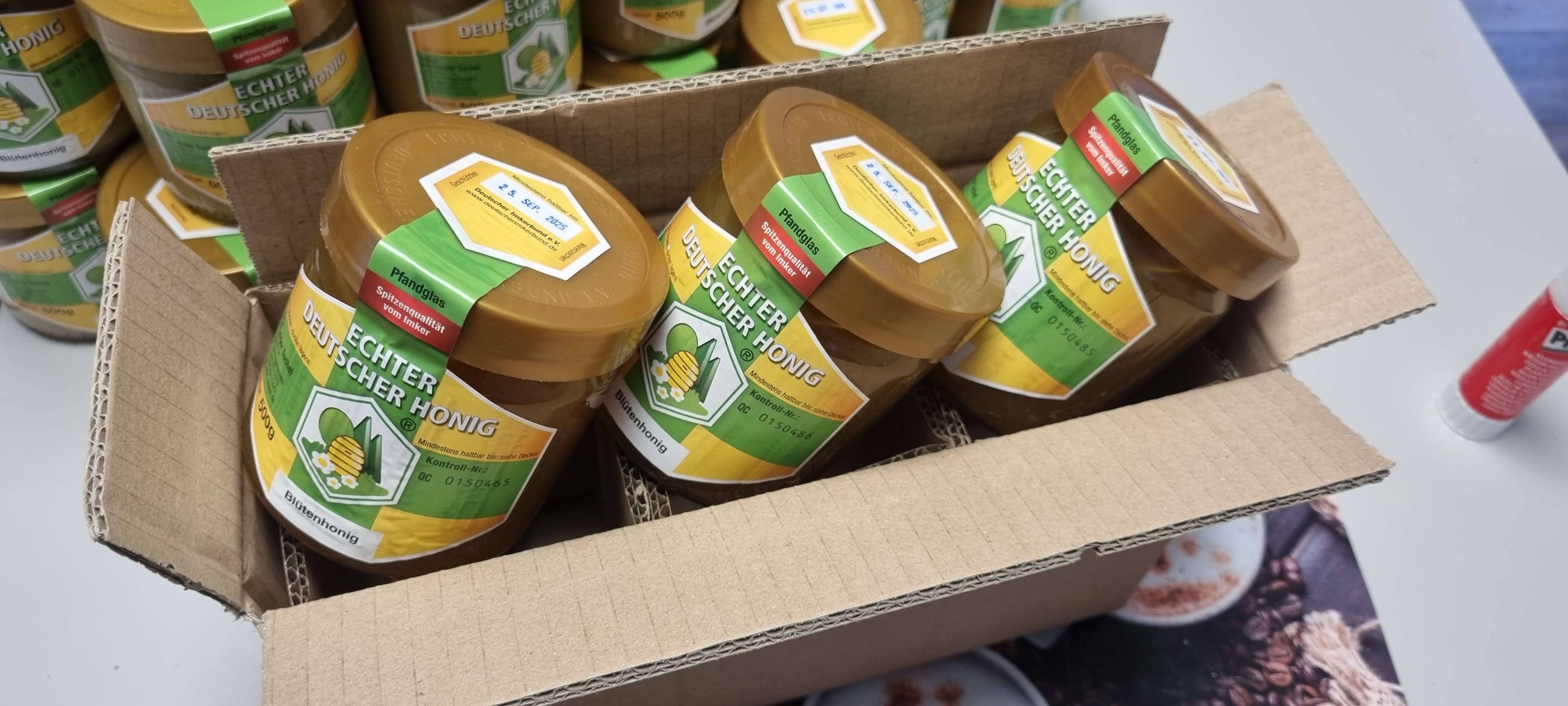 Entdecken Sie den einzigartigen Geschmack unseres selbstgeimkerten Honigs! Unsere Bienen sammeln den Nektar aus blühenden Wiesen und Gärten, was zu einem köstlichen, aromatischen Honig führt, der reich an natürlichen Aromen und Nährstoffen ist.