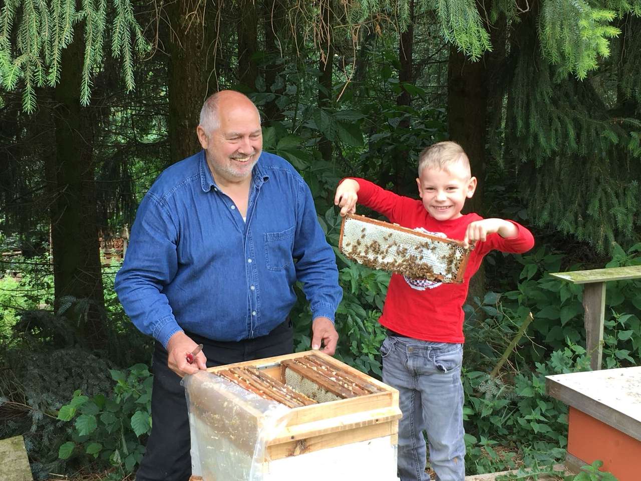 Rasse: Buckfast | Rähmchenformat: Deutsch-Normal-Maß | Rähmchen gesamt: 6 | Brutwaben: 3 | Waben in Produktion: 3, 2 | Futterwaben: 1 | Königin: Wirtschaftskönigin | Begattungsart: Standbegattet | BIO mit Zertifikat: Nein
