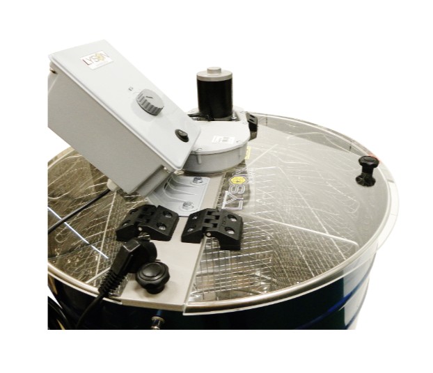 Praktische Honigschleuder für Hobbyimker und Einsteiger mit elektrischem Antrieb. Die Schleuder bietet Platz für 4 Rähmchen (DNM, Zander, LS, BW, Dadant). Die Trommel ist aus säurebeständigem Edelstahl gefertigt. Der Korb besteht aus rostfreien, säurebeständigen Stäben. Der Korb kann zum Reinigen sehr einfach ausgebaut werden. Durch die ausgeklügelte Konstruktion ohne Mittelachse können die Rähmchen in der Schleuder gewendet werden, ohne sie heraus und wieder hinein zugeben. Die transparente Ausführung des Deckels ermöglicht es den Schleudervorgang zu beobachten, ohne ihn zu öffnen.